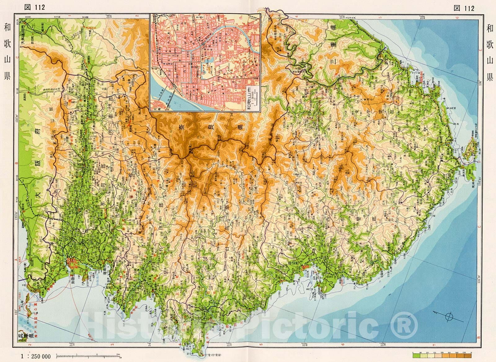 Historic Map : Wakayama Prefecture, Japan, 1956, Vintage Wall
